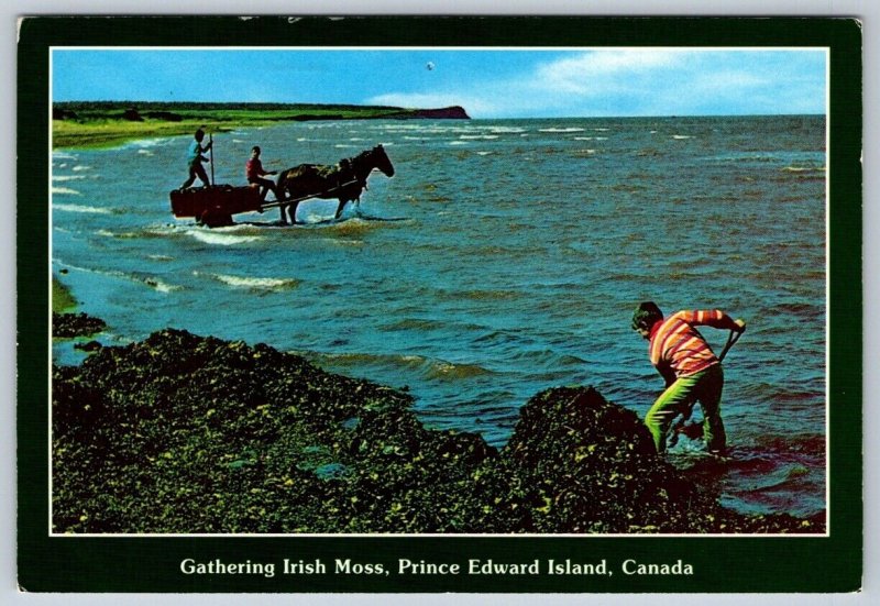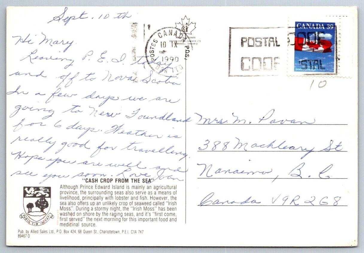Gathering Irish Moss, Prince Edward Island, 1990 Postcard, Postal Code Postmark