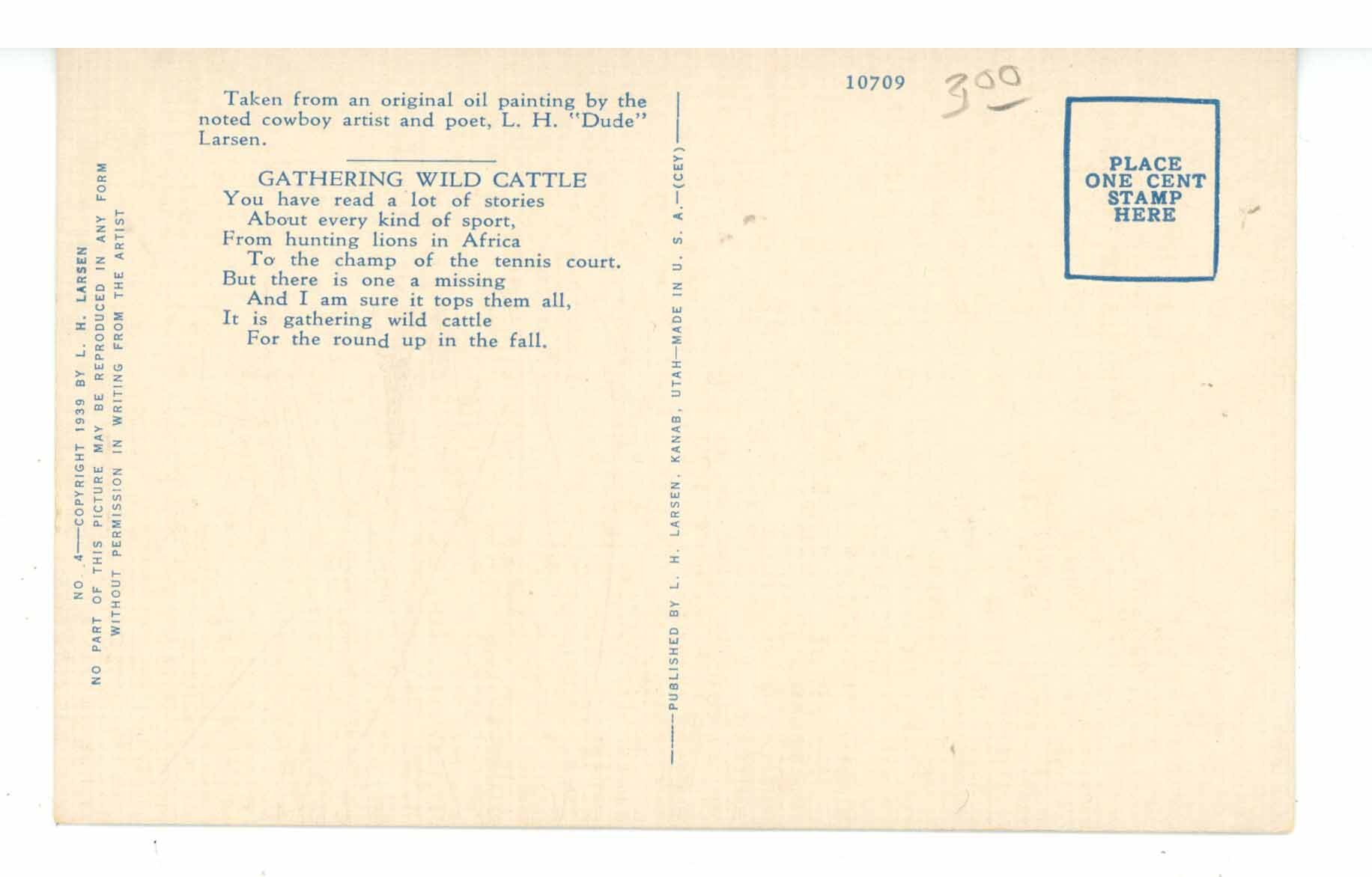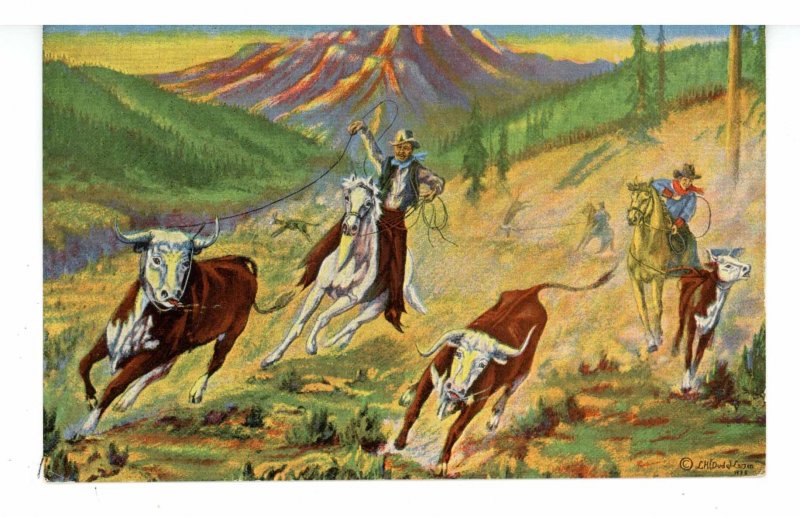 "Gathering Wild Cattle" Artist: L.H. "Dude" Larsen