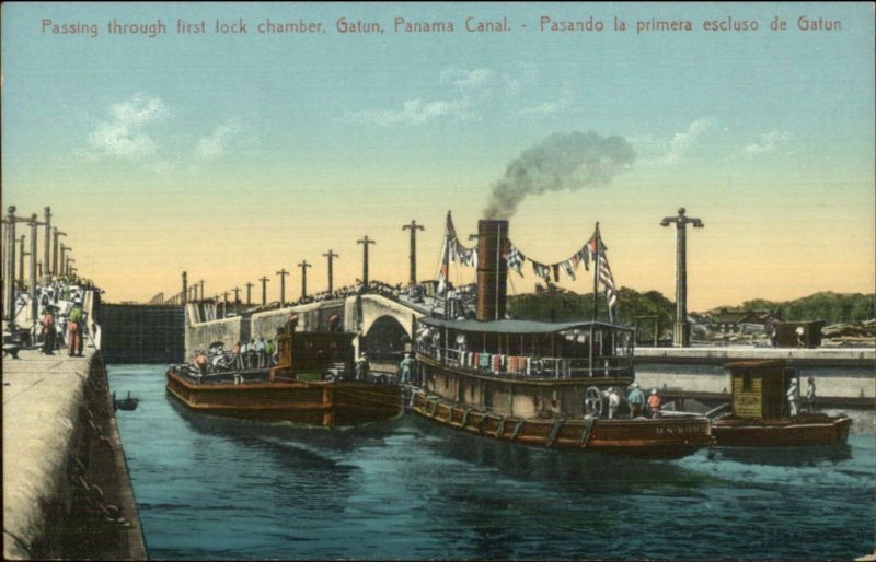 Gatun Panama Canal Boats First Lock Chamber c1910 Postcard