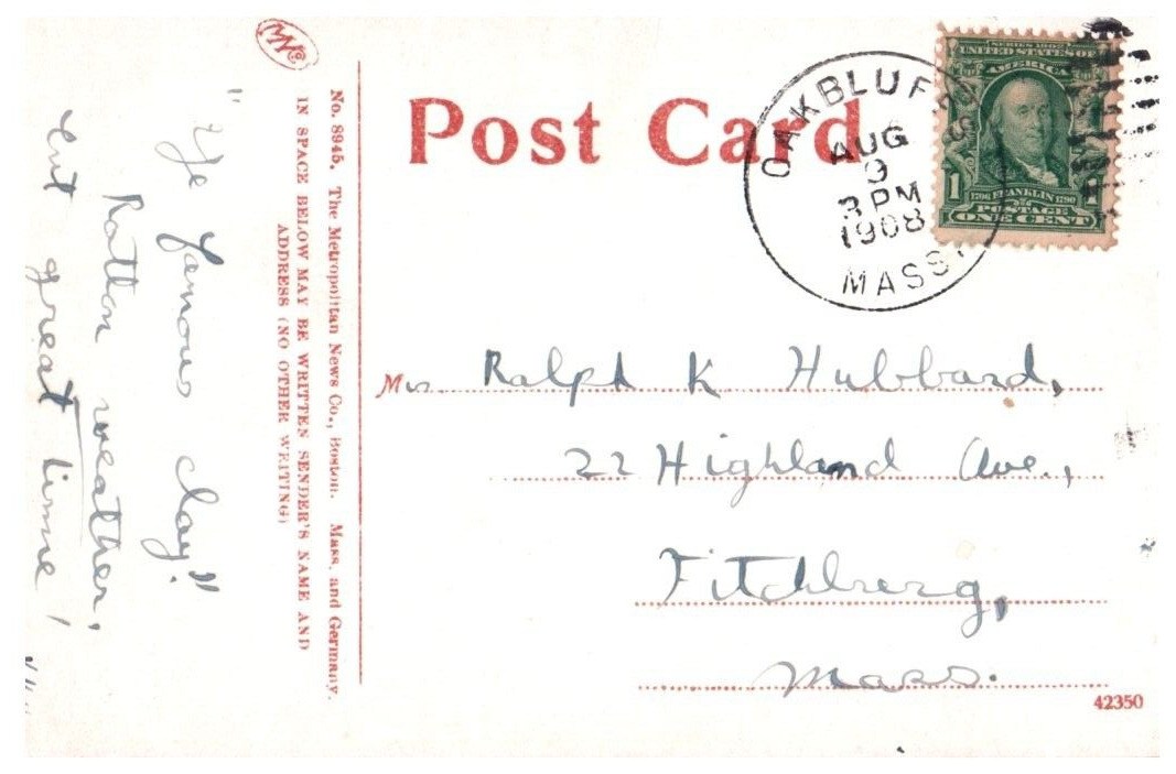 Condition: Pre-owned. Stored well. May have mild edgewear. Typical. Gay Head Cliffs Marthas Vineyard Massachusetts Postcard Posted 1908