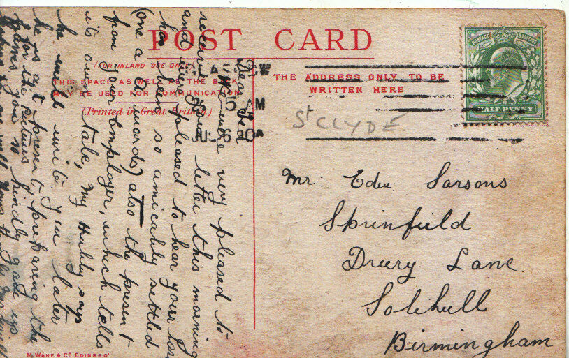 Genealogy: in an effort to assist people researching their family history i have decided to make postally used pre 1960 postcards available for research purposes. These postcards will have defects which range from minor creases and tears to major faults. The postcards are only being offered for research purposes. Please do not expect a damage free postcard. I will endeavour to list the recipients correct details. Errors may be made. To improve your chances of locating an ancestor why not type the name or address into the search box of my store.