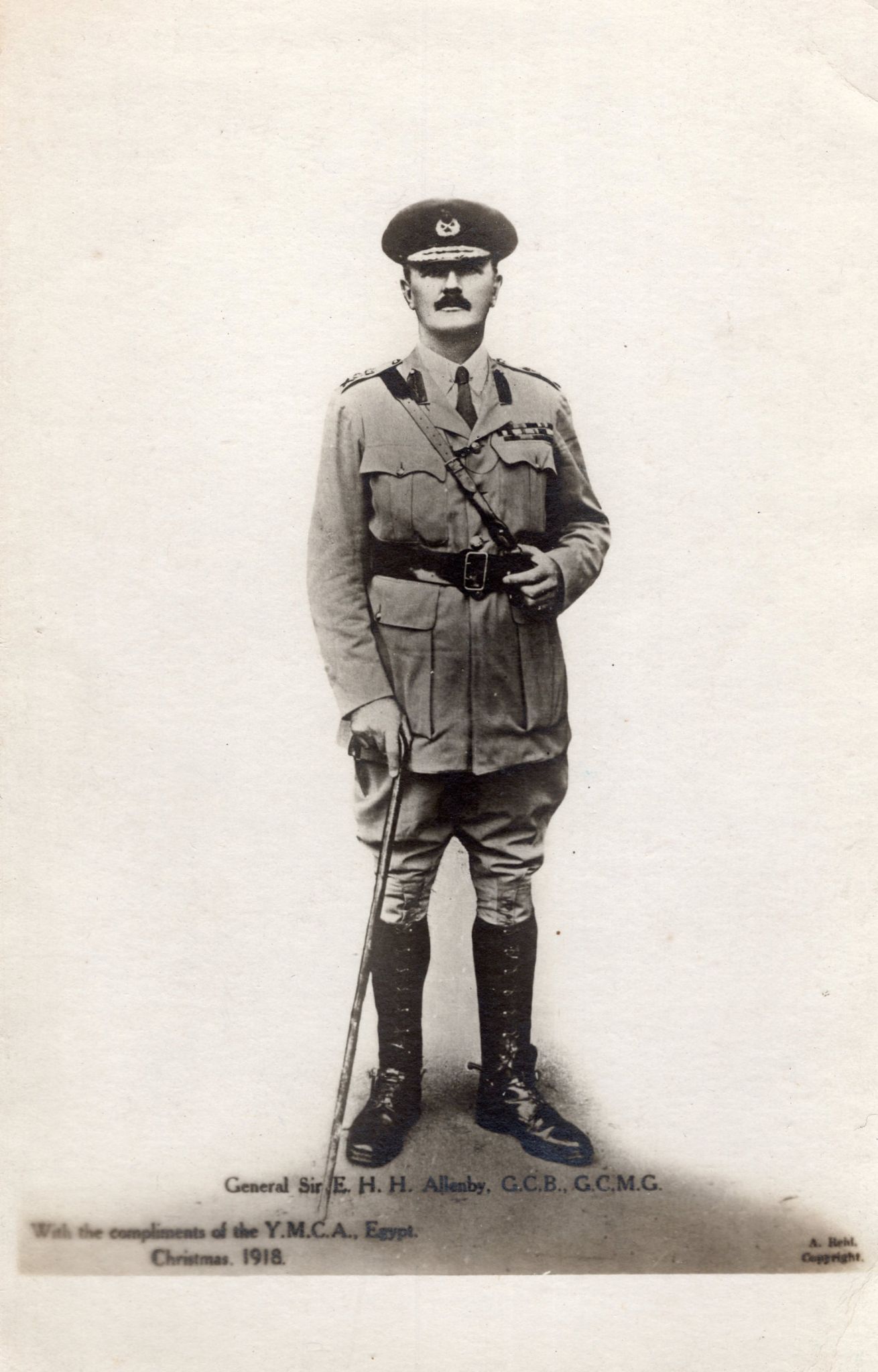 y7 Antique postcard of General Allenby for YMCA Egypt dated 1918 - see lower left corner as appears for the YMCA members in wartime - small corners to allow - some aging - otherwise very good and a real character wartime postcard
