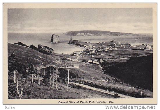 General View Of Perce, Quebec, Canada, PU-1935 :: Antique (Vintage) Original Postcard, Standard Size (3.5 by 5.5), Litho, VG+, Slight CW, WOB.
