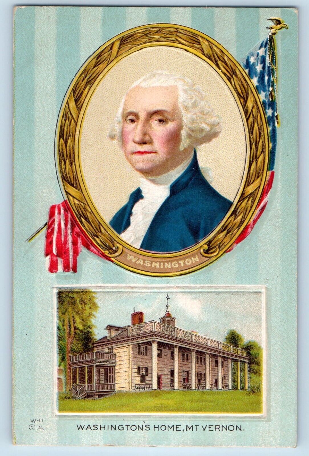 George Washington Postcard Home Mt. Vernon Flag Embossed c1910's Antique