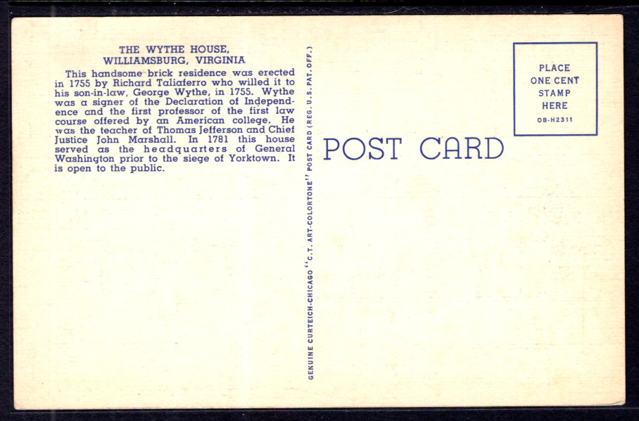 George Wythe House,Washington's Headquarters,Williamsburg,VA BIN