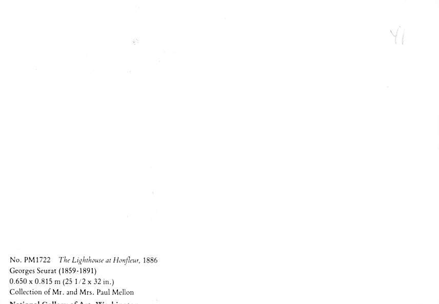 Georges Pierre Seurat, The Lighthouse At Honfleur Postcard Grade: 1 Size: Continental Size - approximatly 4 Inch x 6 Inch (15 cm x 10.5) Grading Scale: Grade 1 = Perfect corners Grade 2 = Very Minimal corner w ... Read More