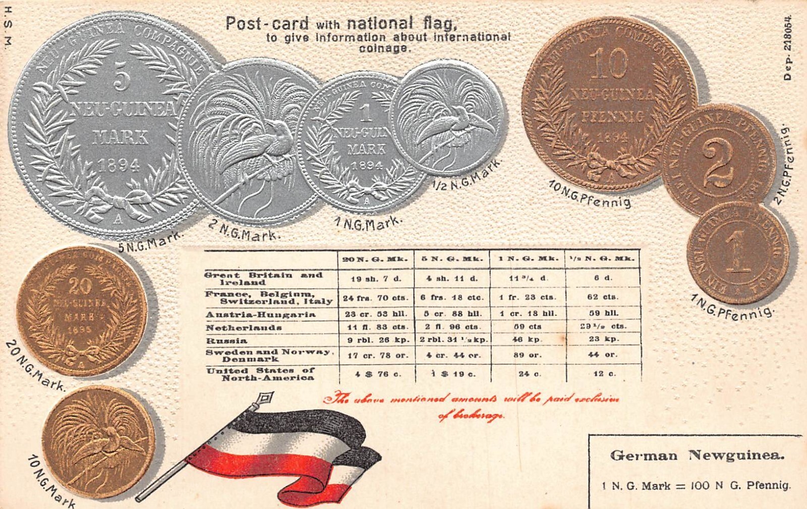 German New Guinea Table Flag Coins embossed coinage postcard C314 This item is listed via xdm.it software