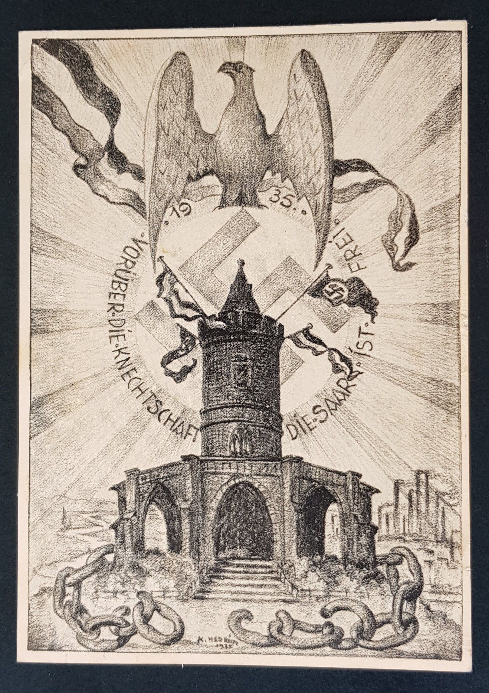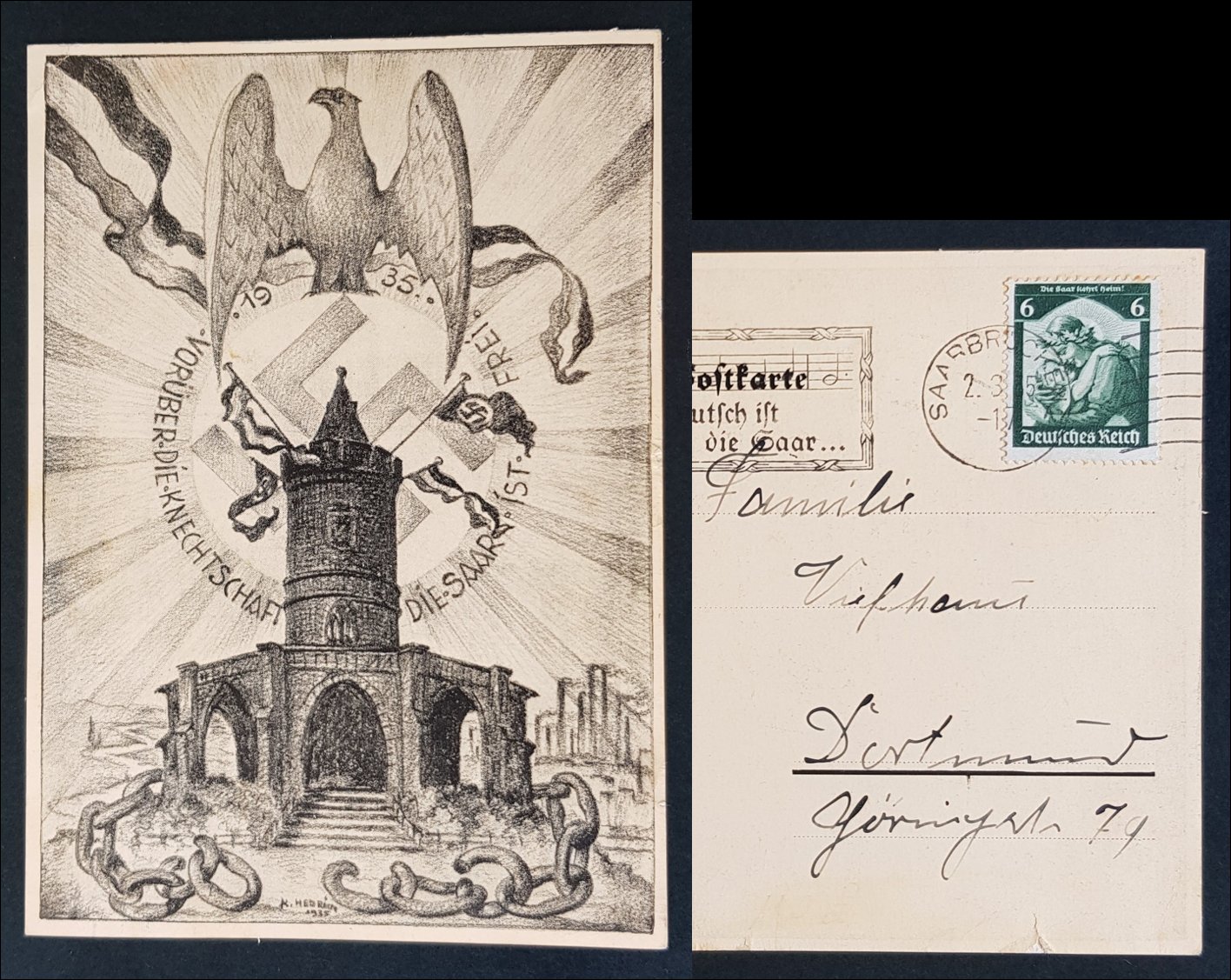GERMAN THIRD 3rd REICH PROPAGANDA CARD 1935 SAAR IS FREE