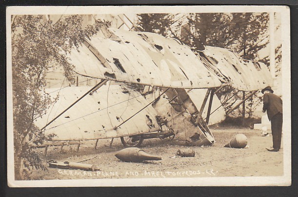 German WWI Crashed airplane and torpedoes Post Card PPC27