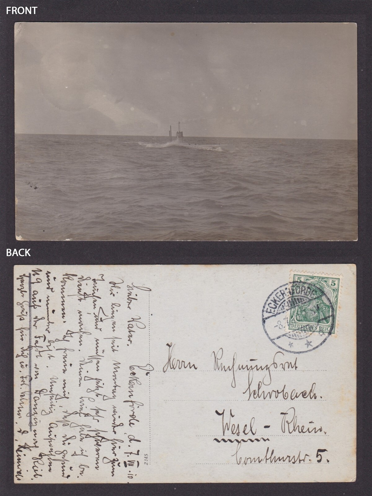 GERMANY 1910, Postcard to Wesel, Submarine U-boot, RPPC