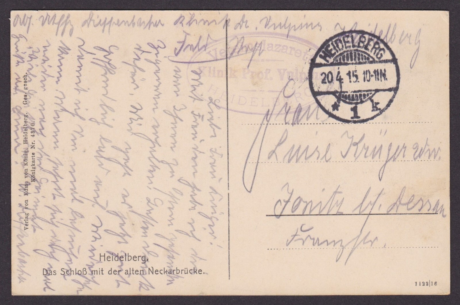 GERMANY 1915, Fieldpost card, Heidelberg, WWI