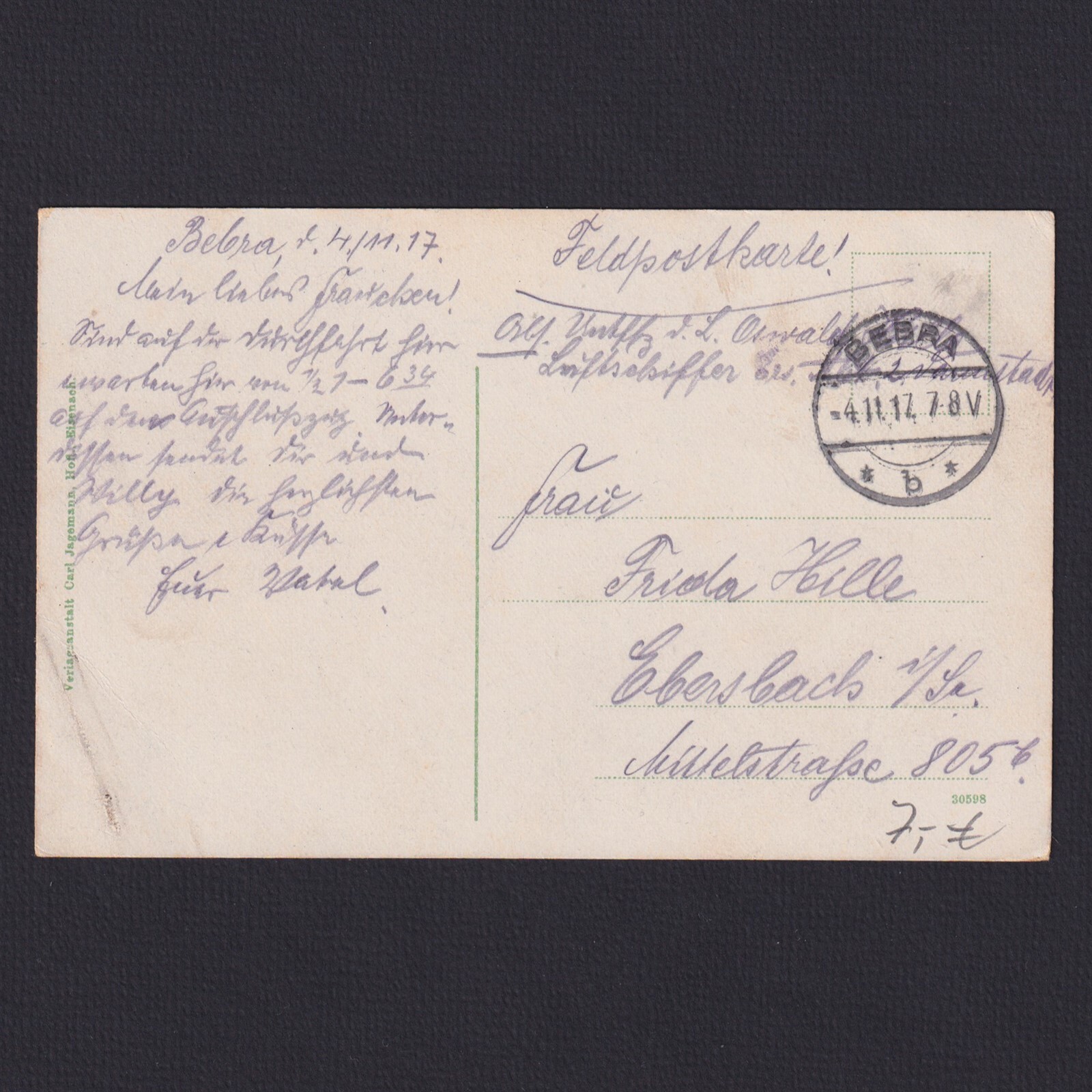 GERMANY 1917, Postcard, Bebra Railway station, Feldpost, Used The postcard has a crease. Please, look at the pictures!