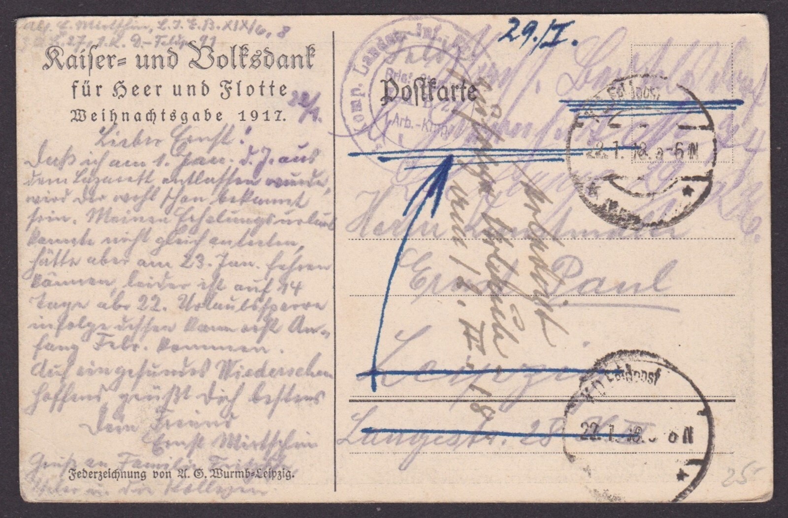 GERMANY 1918, Fieldpost card, Christmas gift 1917
