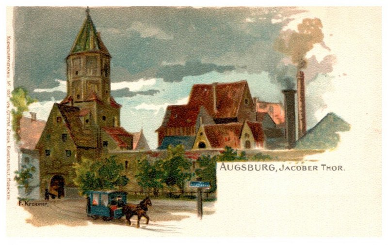 Germany Augsburg, Jacober Thor, signed F.Kraemer