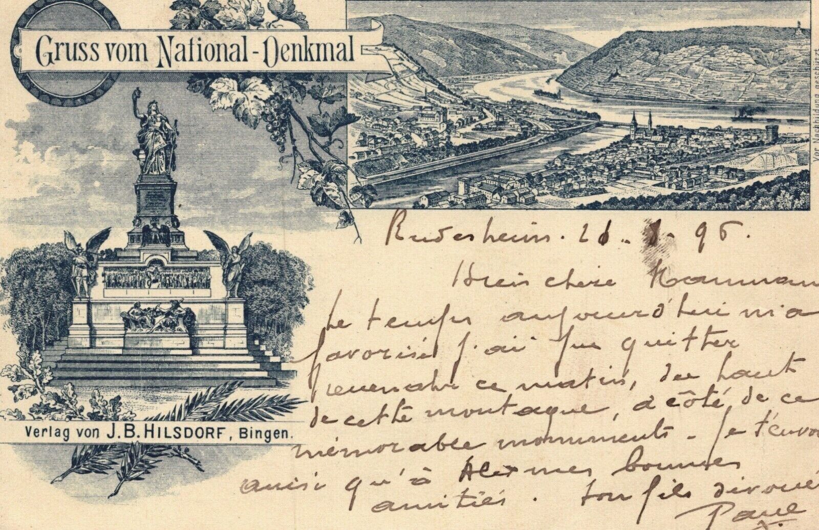 Germany Bingen Gruss Vom National Denkmal Vintage Postcard 03.64
