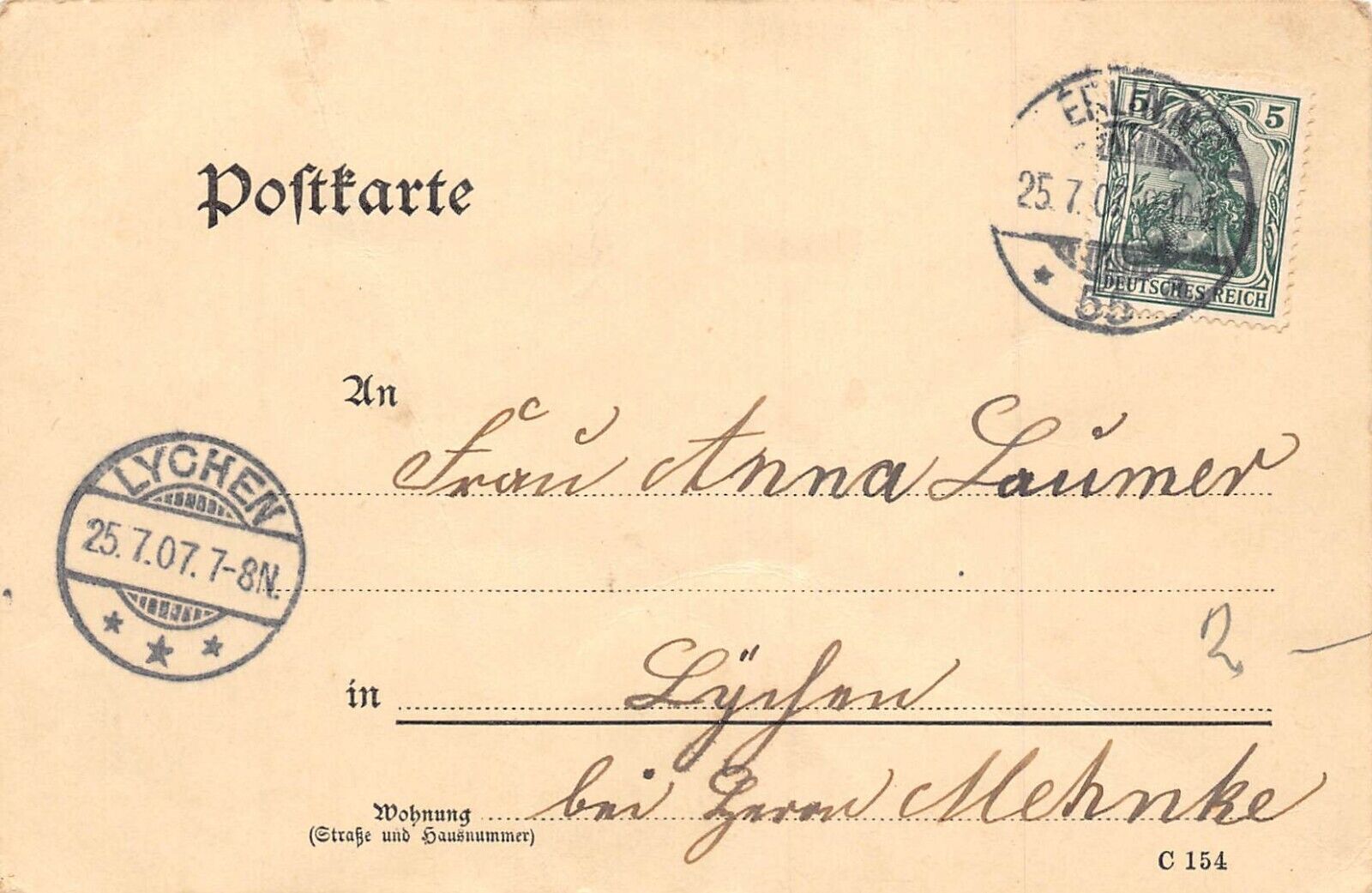 Germany, Erling 1907 to Lychen postal stationery