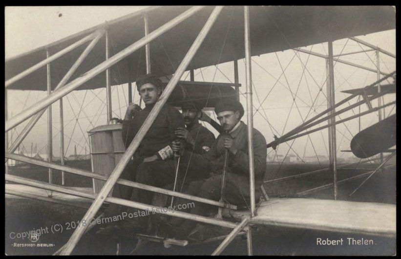Original German Empire Real Photo Postcard (RPPC) of early flight pioneer Robert Thelan in his Wright aircraft -- he worked for the Wright Brothers at Flugplatz Johannisthal (now in the Berlin-Treptow district).