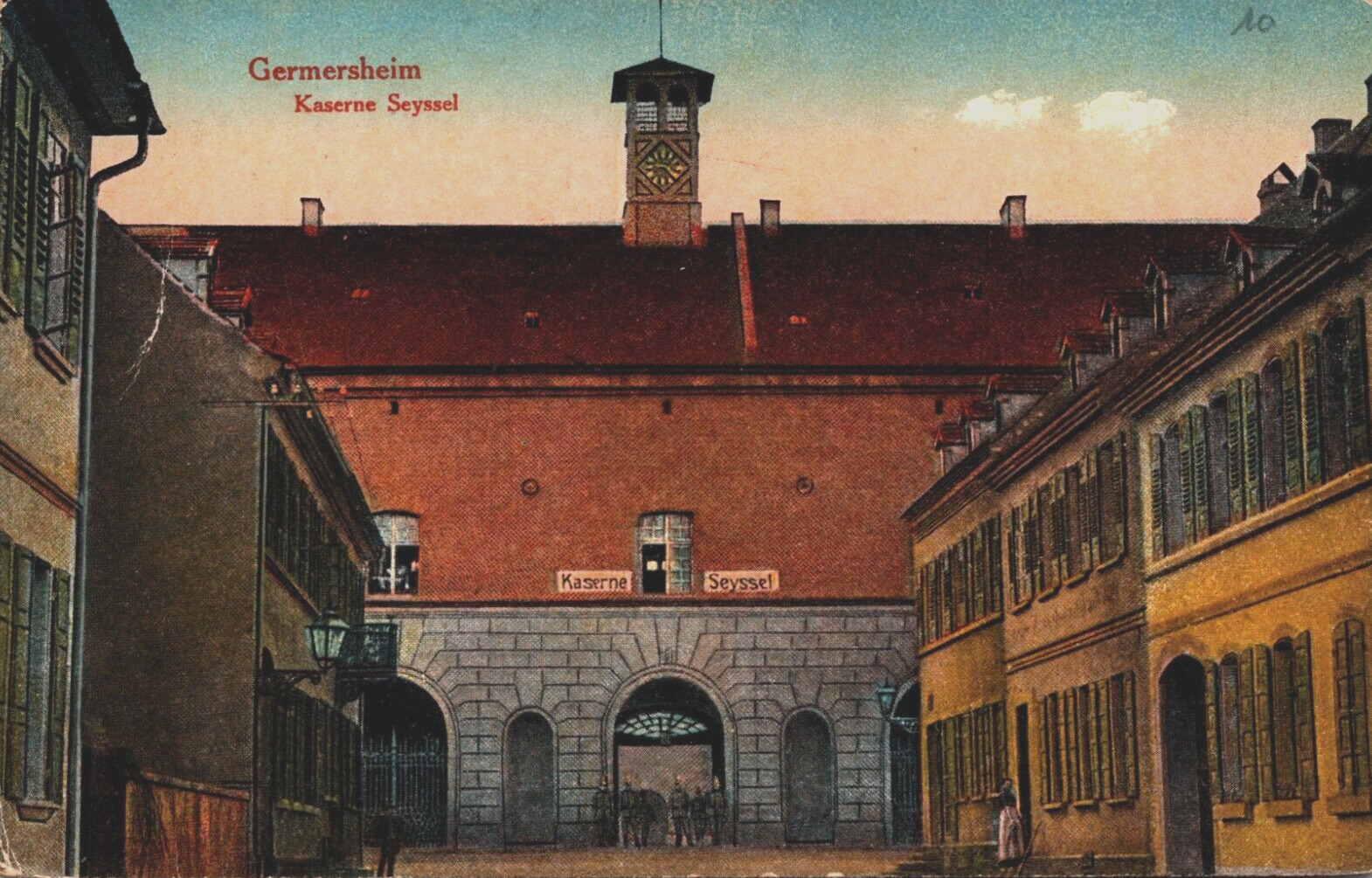 Condition: Look at the pictures for quality. The lines are from the scanner. This vintage postcard depicts the Germersheim Kaserne Seyssel, a historic barracks in Germany. The postcard is an original printed litho ... Read More