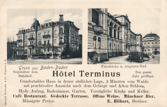 GERMANY Gruss aus BADEN- BADEN Hotel Terminus postcard