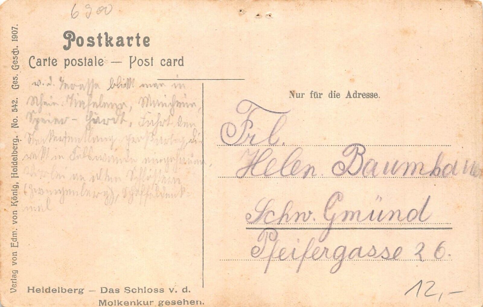 Germany Heidelberg Castle view from Molkenkur vintage postcard