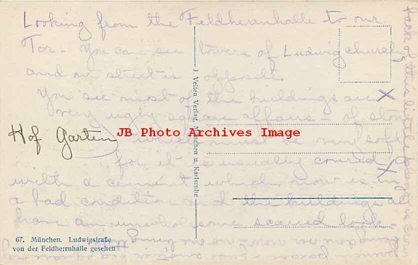 Germany, Munchen, Munich, RPPC, Ludwigstrasse, J Velten No 67 Product Photo Click Image for Larger Preview Product Information This is a nice vintage early real photo postcard showing a scene of Ludwigstrasse in Munich, Germany. Publisher: J Velten No 67. The corners have light wear. The image is nice and clean. Postally unused with writing on the reverse. Please Note: If you see a florescent colored line or streak on the postcard image it is from the scan, not on the card. Typically found a vertical line to the right of the center.The colors tend to come in Green, Yellow, Pink, Blue, Purple & Red. Shipping and Payment TERMS OF SALE: We Do Combine Shipping on Orders. Please wait for a combined Hip invoice with one shipping charge so that you can make one payment. Payment is due within three business days after closing of the auction or sale. Postage & Handling: We Do Combine Shipping on Orders. Please wait for a combined Hip invoice with one shipping charge so that you can make one payment. Orders of single postcards under $14.99 is $2.50 for postage and handling. Orders of single postcards $14.99-74.99 is $5.00 for postage, tracking and handling. All Orders $75.00 and greater may have additional postage, tracking and handling. International shipping is $4.50 for orders under $65. For orders $65 or higher there can be additional charges per listing so that the item can be mailed with tracking or USPS Registered Mail. Combining lots or group lots may be additional depending upon the weight of the package and number of payments. Large Group Lots and other items having specific shipping charges as per the listing. RETURN POLICY All items come with an unconditional 30-day return privilege. Each returned item must be in its original undamaged condition, shipped in the original hard sleeve and should be accompanied by a copy of our invoice. Any returned item should be shipped fully insured for your protection. We use AuctionHelper ! Guaranteed to sell more of your items!