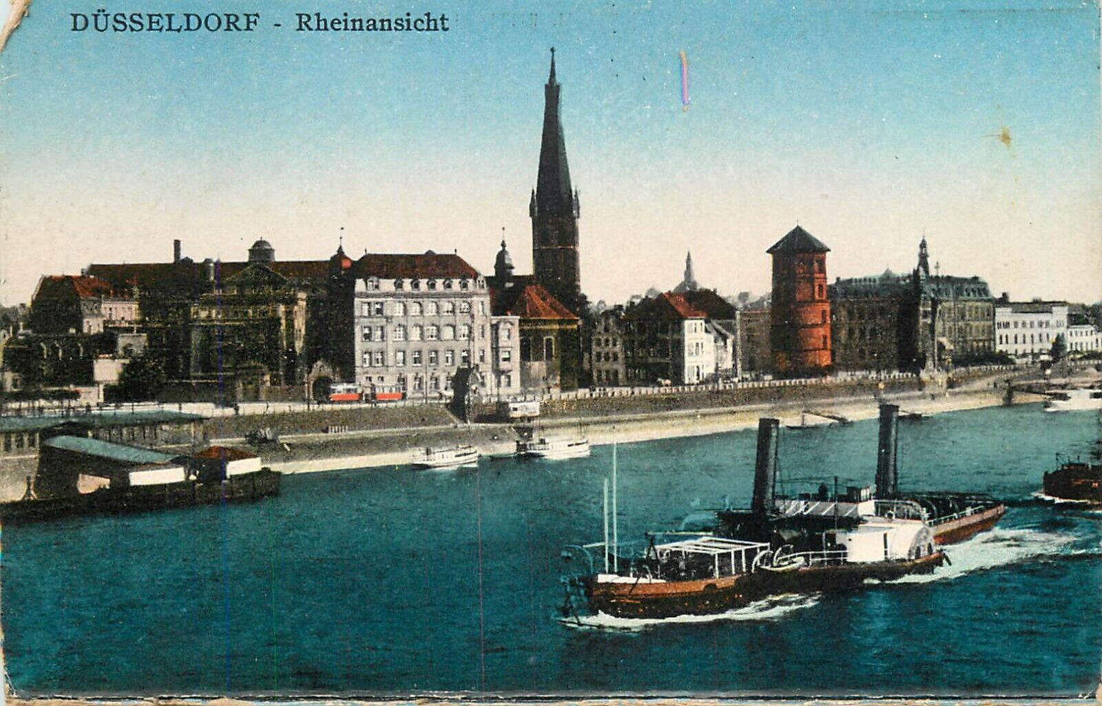 Germany navigation themed postcard Dusseldorf Rheinansicht paddle steamer