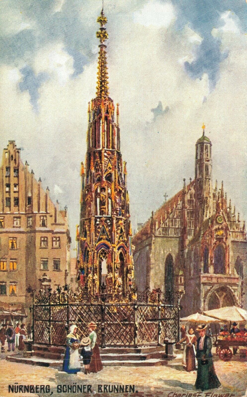 Germany Nürnberg Schöner Brunnen Nuremberg Vintage Postcard 07.46
