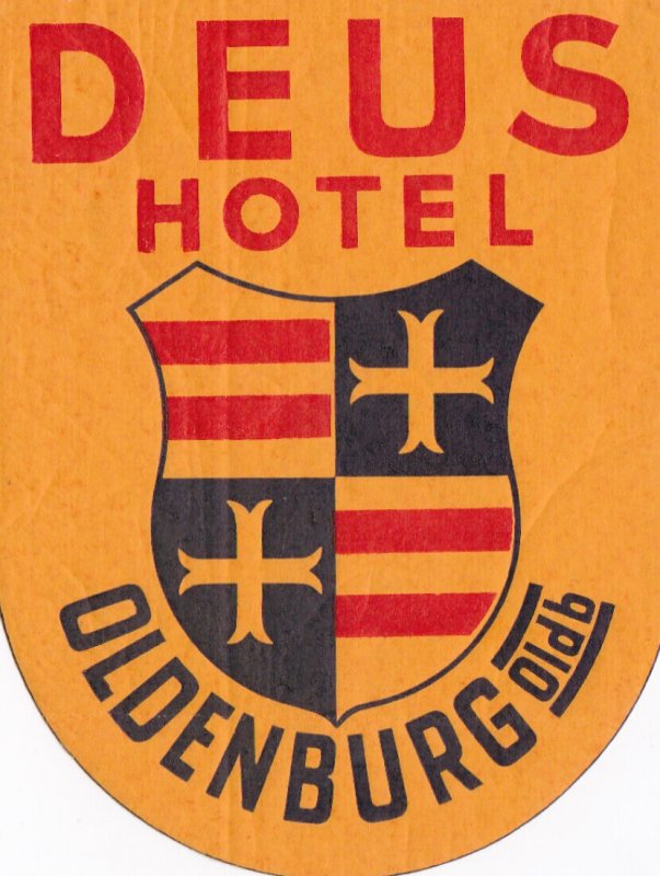 Germany Oldenburg Deus Hotel Vintage Luggage Label sk2571