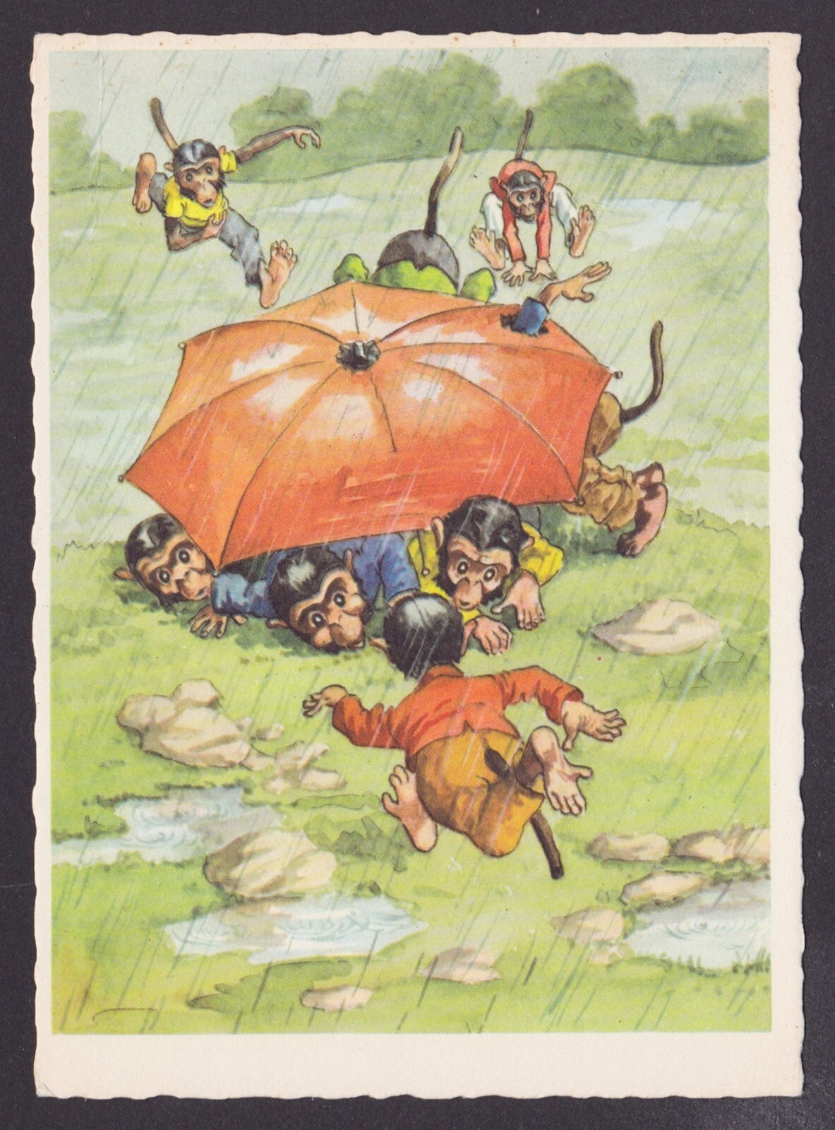 GERMANY, Postcard, Monkeys in the rain, Unposted