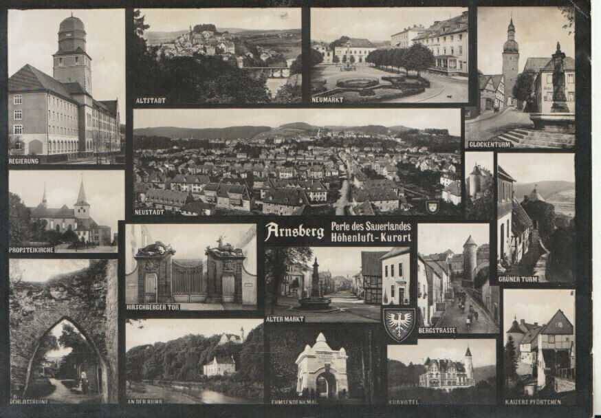 Mo's PostcardsPostcard Description: Germany Postcard - Views of Arnsberg Genealogy: Defects: No stamp. Small crease to top righthand corner Postage & Payment: For U.K residents the quoted P & P fee is for any number of postcards purchased at one time. Happy to quote for non UK residents. For multiple purchases please wait for an invoice