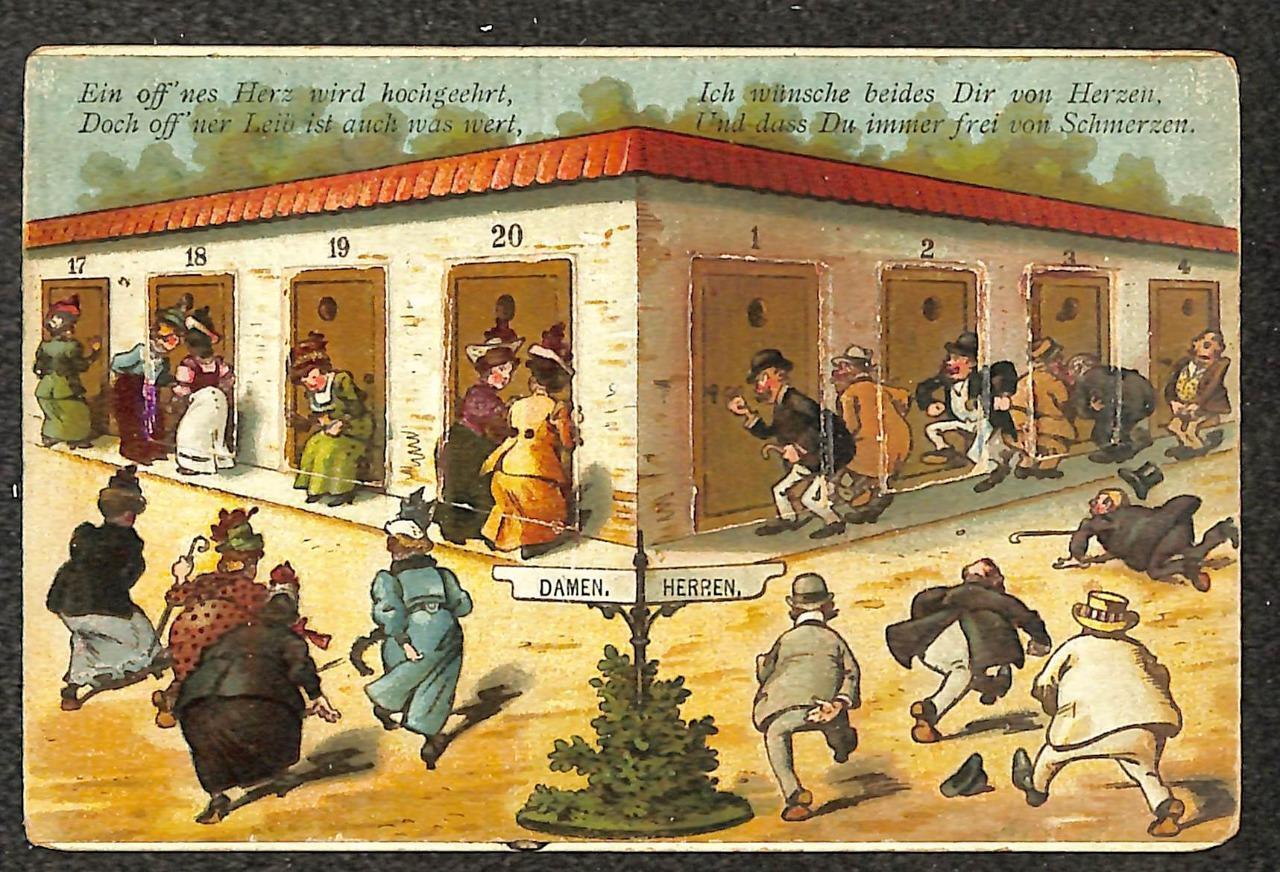 GERMANY PUBLIC DEMAND FOR TOILETS COMIC MECHANICAL NOVELTY POSTCARD (1910) !!