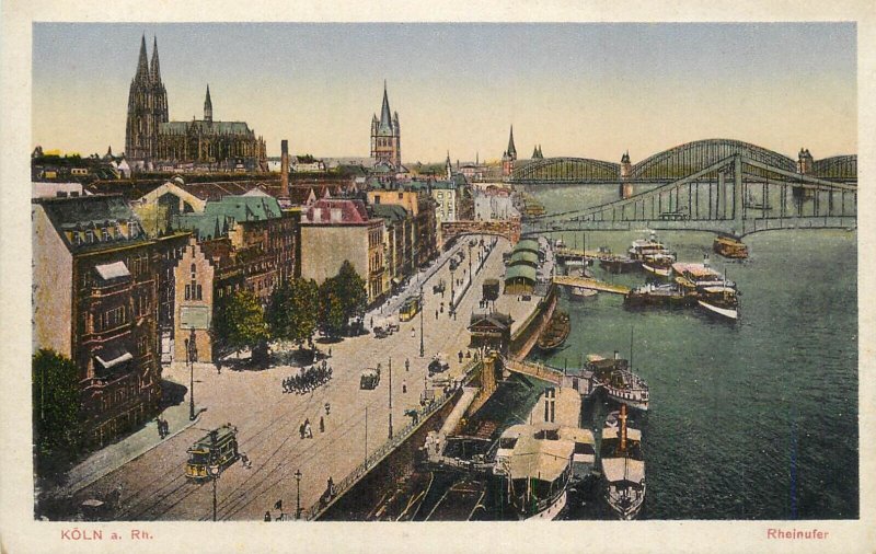 Germany sail & navigation themed postcard Koln Rhein dock pier paddle steamer