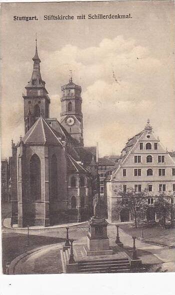 Germany Stuttgart Stiftskirche mit Schillerdenkmal 1915