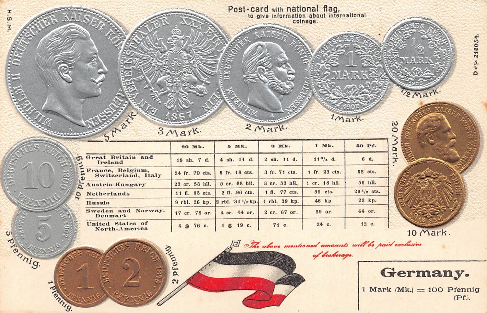 Germany Table Flag Coins embossed coinage postcard C314 This item is listed via xdm.it software