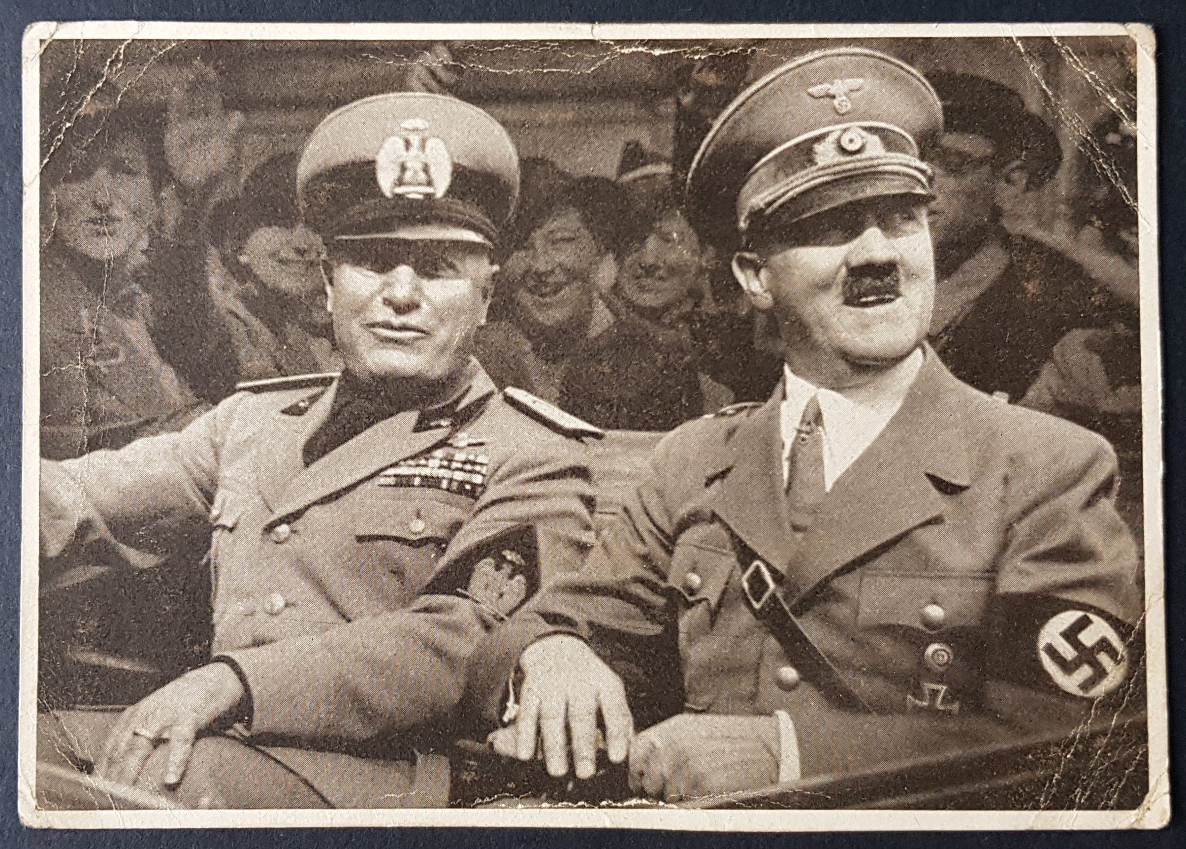 GERMANY THIRD 3rd REICH ORIGINAL NSDAP PROPAGANDA POSTCARD HITLER & MUSSOLINI