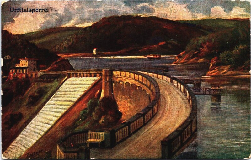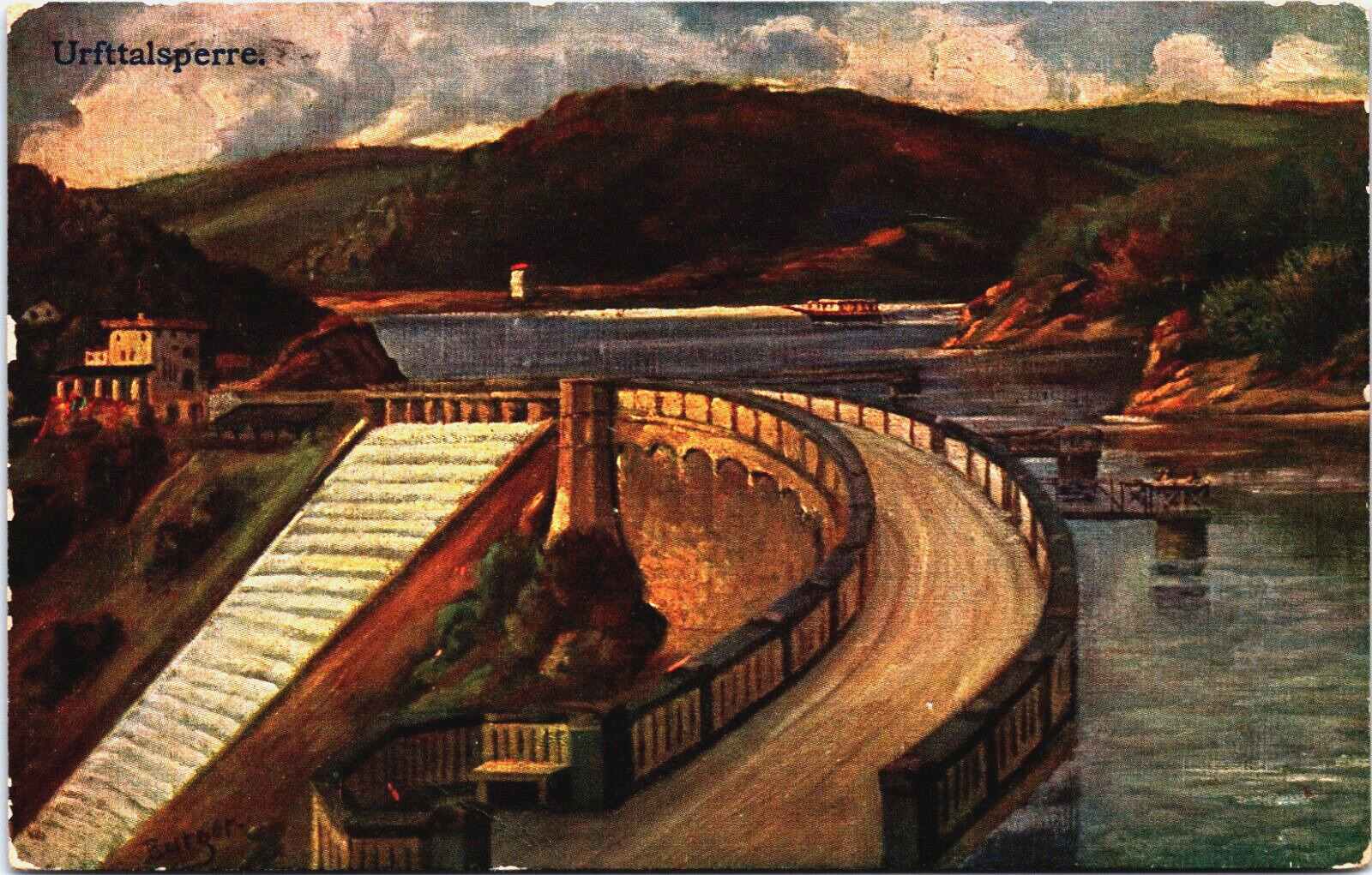 Germany Urfttalsperre Sperrmauer mit Hotel Vintage Postcard C170