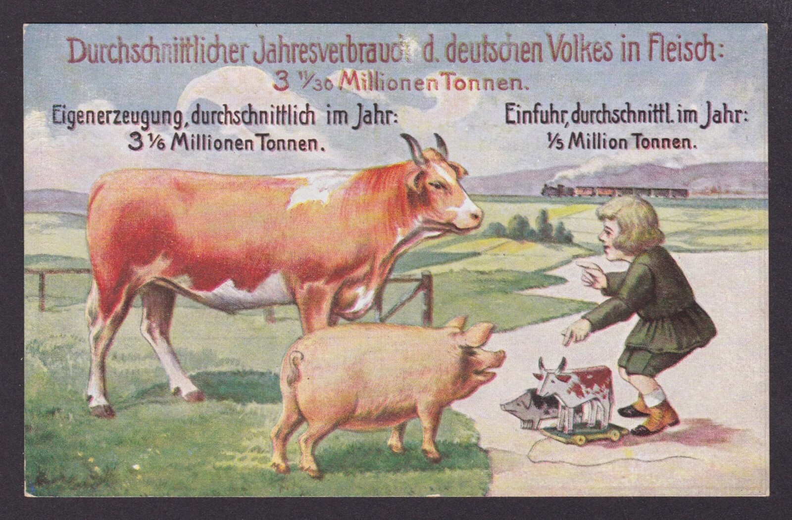 GERMANY, Vintage postcard, Average annual consumption, Pigs, Cow, Unposted