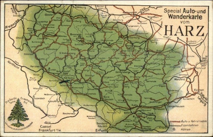 Germay Auto Map HARZ c1910 Postcard