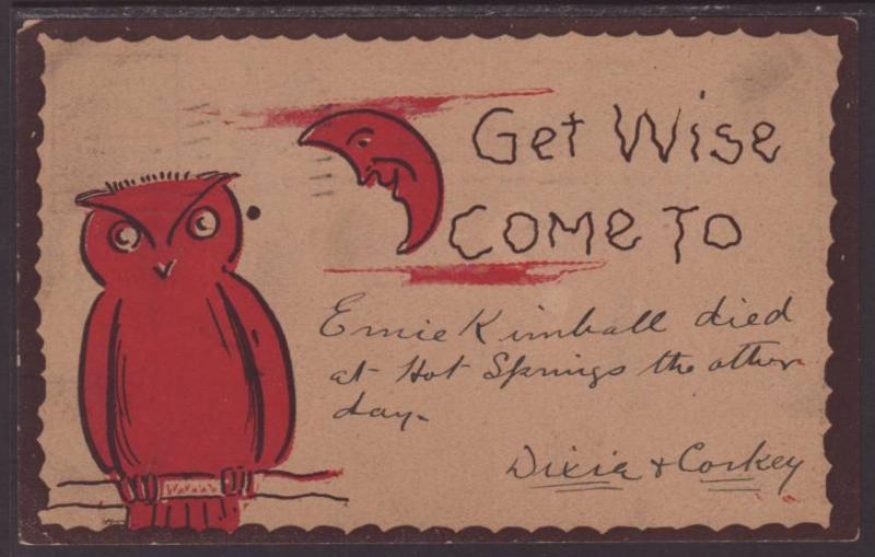 Get Wise Come To ...,Owl,Moon,Comic Postcard