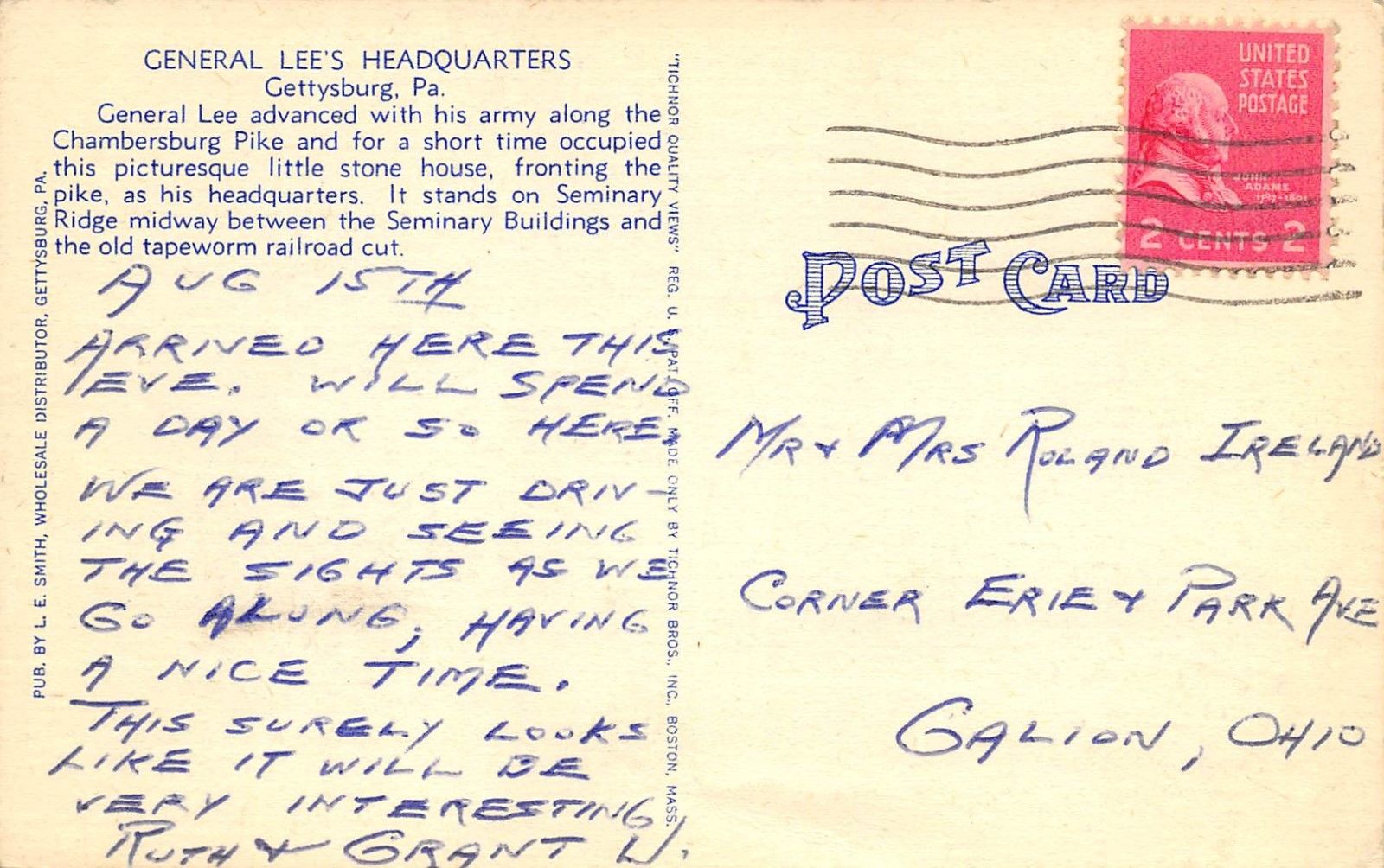 Gettysburg Pennsylvania 1940s Postcard General Robert E Lee's Headquarters CSA