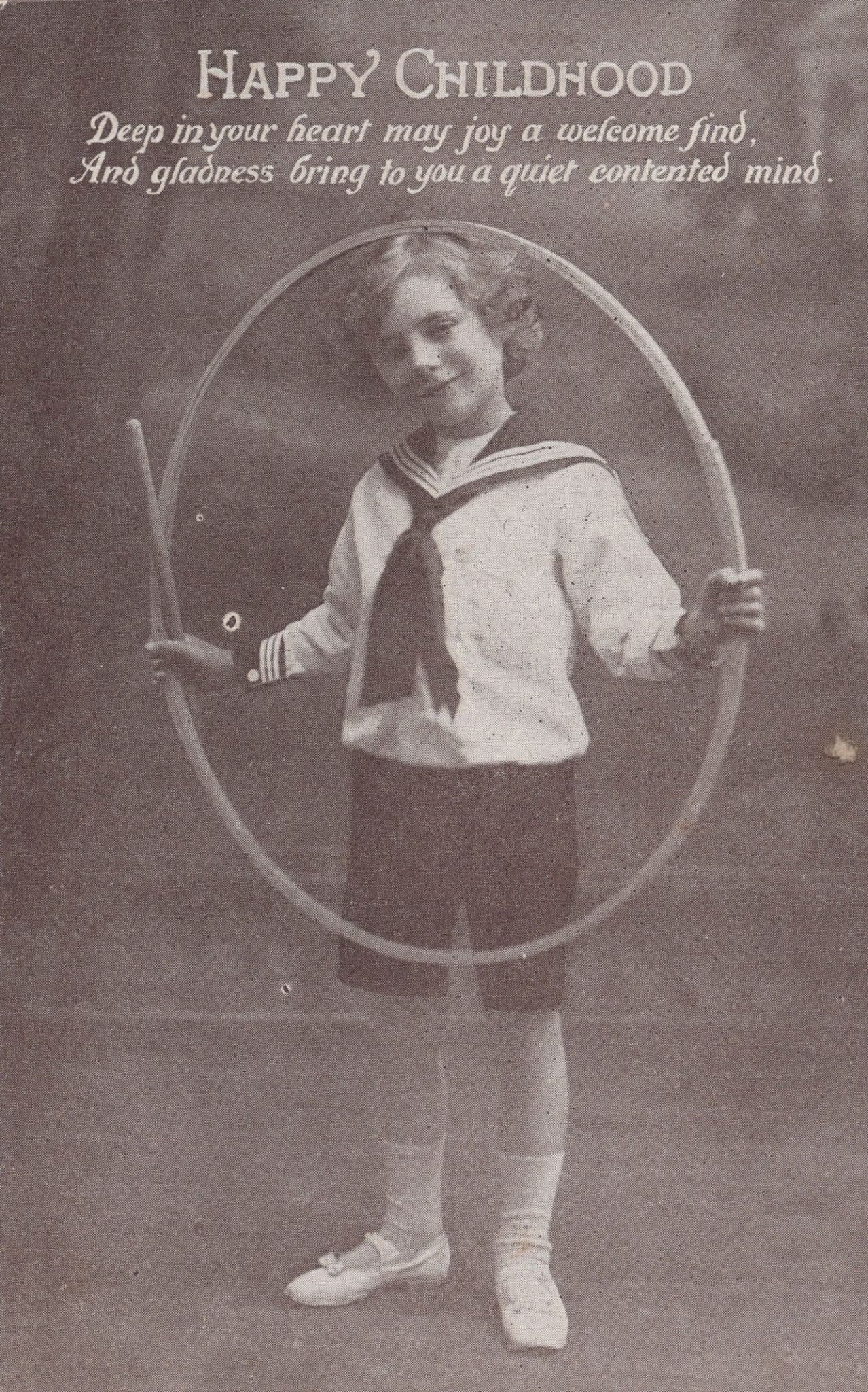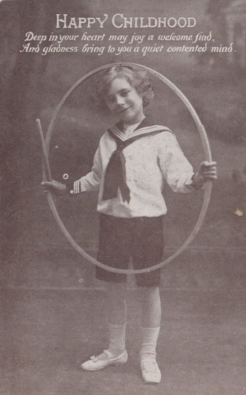 TS233 Antique greetings postcard of this boy having a large hula hoop exercise toy for his present with small places to allow but mostly great unused condition. He holds it up and it is nearly two thirds his size. ... Read More