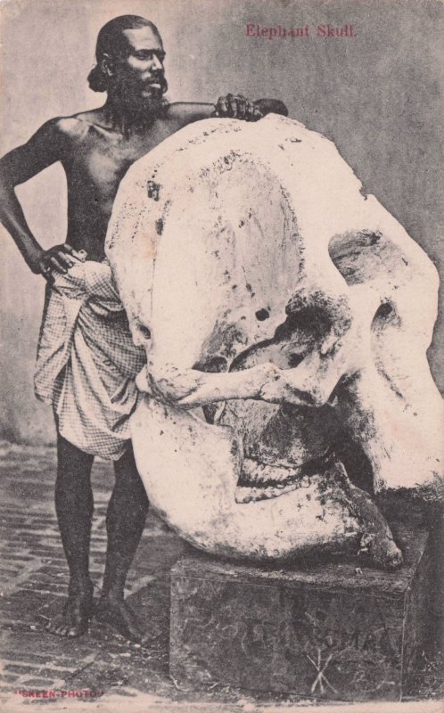 NP126 Antique postcard of this giant elephant skull from an Indian animal hunter unused a little lightly aged but truly outstanding condition.