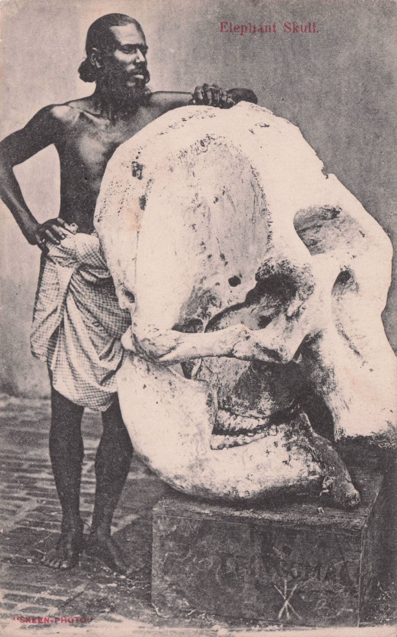 Giant Elephant Skull Skeleton Indian Hunter Antique Postcard