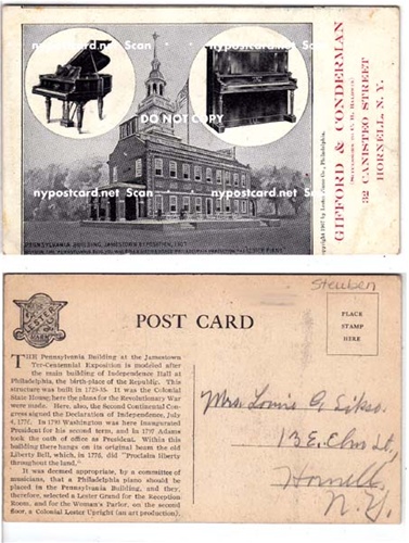Gifford & Conderman Piano's, Hornell Ny Description: Postal Usage: Unmailed Condition: Very Good Type: Printed Note: County: Steuben Co. > Hornell