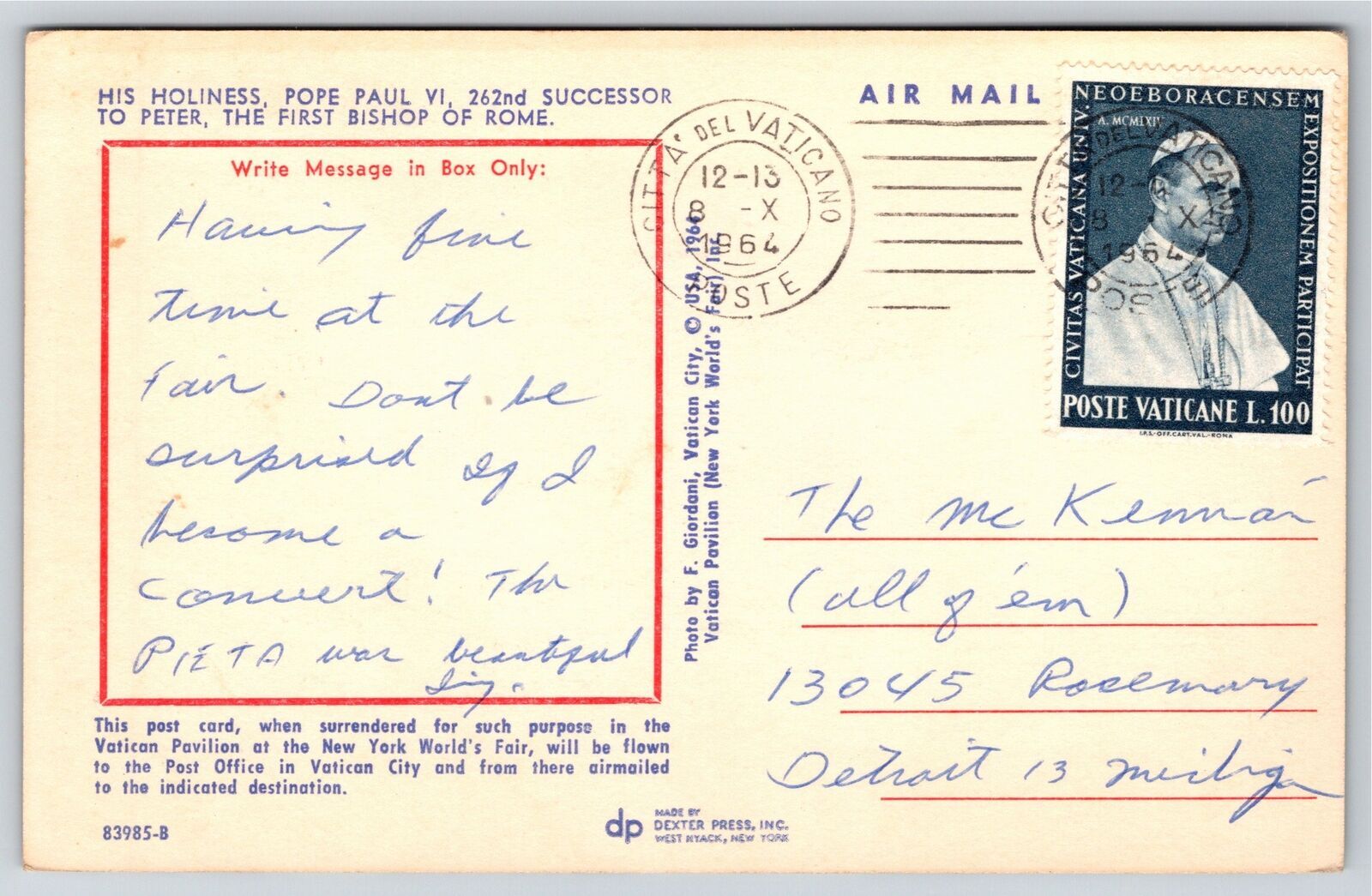 Condition: Vintage Postcard listed as "used" because of age. It may or may not be postally used. We provide ... Read more about the seller notes Vintage Postcard listed as "used" because of age. It may or may not be postally used. We provide scans that show edges and corners. See photos, front and back, for condition. Read Less about the seller notes