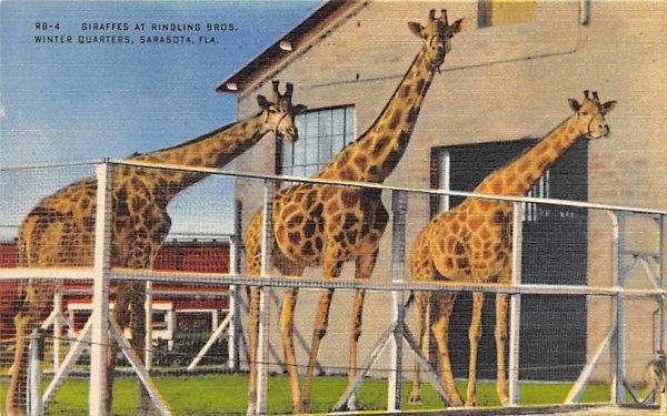 Giraffes at Ringling Bros, Winter Quarters Sarasota , Florida Postcard ,