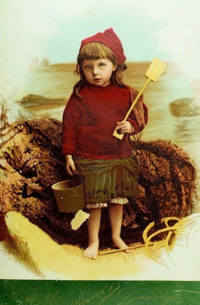 Girl Beach Sand Pail - Christmas Francis Ridley Havergal Poem Victorian Card &R