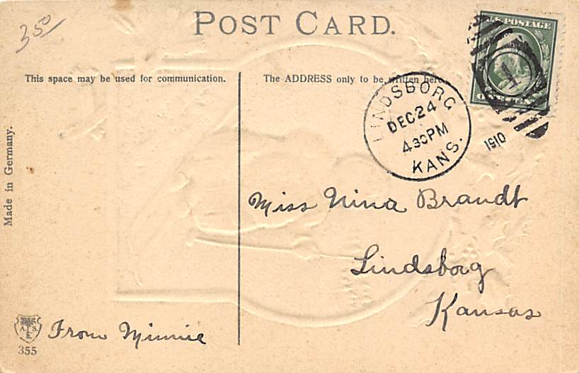 Girl Skiing Christmas Postcard 1910, Grade: 2, , Size: Regular size: Approx 3 1/2 X 5 1/2 inch (9 cm X 14 cm) Grading Scale: Grade 1 = Perfect corners Grade 2 = Very Minimal corner wear, no creases Grade 3 = S ... Read More