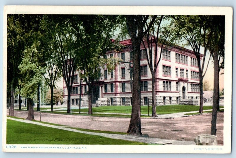 Glen Falls New York NY Postcard High School Glen Street Building c1910 Unposted