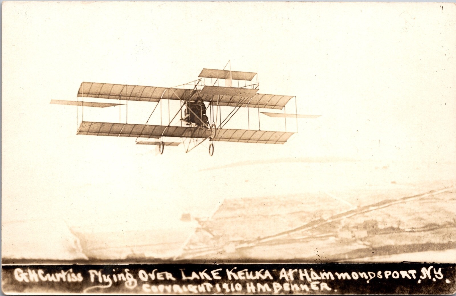 Glenn Curtiss Flying Over Lake Keuka Hammondsport New York RPPC 1910 Benner